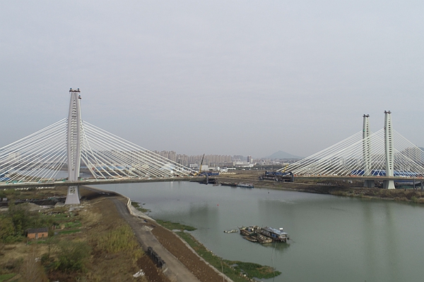 遠(yuǎn)遠(yuǎn)的就能看見(jiàn),在巢湖市東南的裕溪河上,兩對(duì)魚(yú)梭型的塔柱高聳入云,分立兩岸,仿佛四位銀色衛(wèi)士,在守衛(wèi)著居巢大地。