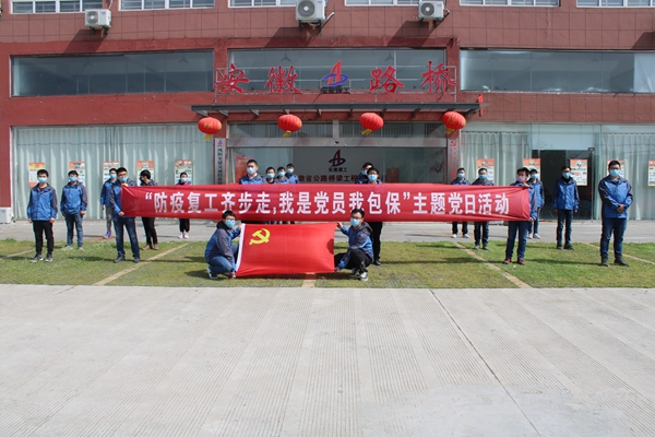 支部書記朱生才首先宣讀了“黨員包保責(zé)任區(qū)”活動方案。黨員代表王祥在發(fā)言中表示,將堅定信心,化危為機,帶領(lǐng)員工快速實現(xiàn)復(fù)工復(fù)產(chǎn),確?!捌鸩郊礇_刺、復(fù)工即大干”,讓黨旗在防疫復(fù)工一線高高飄揚。黨日活動還就復(fù)工過程中如何做好宣傳、聯(lián)防聯(lián)控、安全隱患整改、早日恢復(fù)規(guī)模化施工等問題進行了梳理研究?;顒幼詈螅h員同志一起重溫了入黨誓詞。