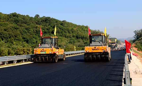 大浦高速路面項(xiàng)目瀝青混合料單日和單月產(chǎn)量刷新記錄