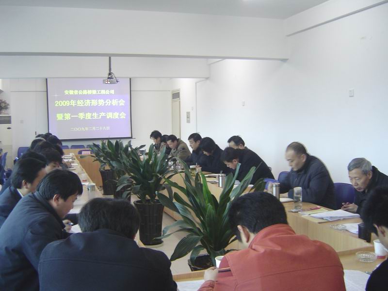 2月28日,公司在四樓會議室召開2009年經(jīng)濟(jì)形勢分析會暨第一季度生產(chǎn)調(diào)度會。公司領(lǐng)導(dǎo)班子成員、直屬(生產(chǎn))單位負(fù)責(zé)人、機(jī)關(guān)部門負(fù)責(zé)人、直屬項(xiàng)目部經(jīng)理、總工和財(cái)務(wù)負(fù)責(zé)人共計(jì)50余人參加了會議。會議由副總經(jīng)理盛明宏主持。