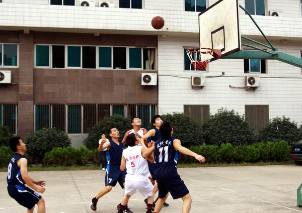 29日下午4:05,比賽在友好熱烈的氣氛中正式開(kāi)始。比賽中,每位隊(duì)員都積極拼搶,穿插跑動(dòng)、擋拆掩護(hù)、突破傳球、空位投籃、卡位搶籃板,比賽激烈精彩。一次成功的配合,一次精彩的進(jìn)球,都能激起場(chǎng)邊啦啦隊(duì)員的激情喝彩。有的隊(duì)員在球場(chǎng)上被撞倒了,“犯規(guī)者”立即伸出手將他拉起,因?yàn)榍騿T們都知道“友誼第一、比賽第二”;有的隊(duì)員在比賽中受傷了,卻仍然坐在場(chǎng)邊給自己的隊(duì)友加油助威。