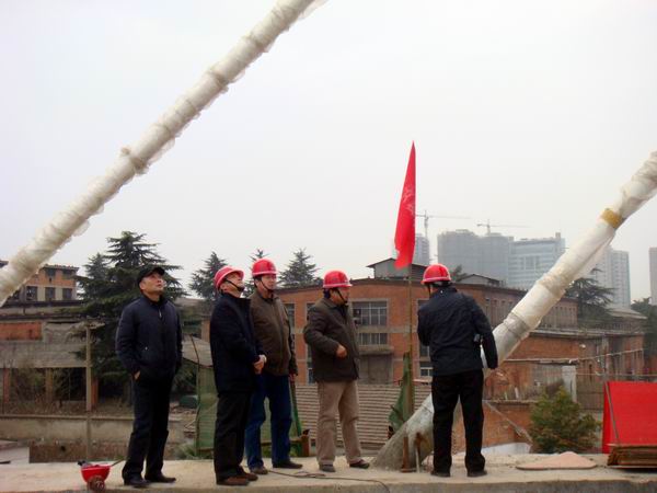 戴總一行參觀了大橋南岸主橋施工現(xiàn)場。在聽取了項目部江仲明經(jīng)理對前期工作和當前施工進展情況的匯報后,戴總對我部工作給予了高度評價,同時提出了更高的要求,希望我部繼續(xù)努力,再上新臺階。隨后,戴總一行還登上了主橋橋面,實地察看了正在緊張進行的主橋前支點掛藍施工,親切慰問了冒著嚴寒戰(zhàn)斗在一線的現(xiàn)場施工工人和技術(shù)人員,并就主橋完成后如何拆除前支點掛藍提出了指導(dǎo)性的方案。