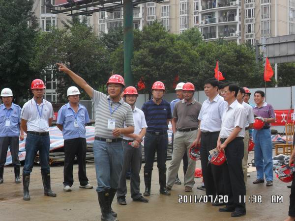 項目經(jīng)理李建成詳細介紹了我標段施工情況,重點介紹了省內(nèi)首次采用的地下連續(xù)墻施工方法。站在地下連續(xù)墻大型施工機械前的代表團成員們仔細的聽、不停的點頭稱贊,并不時的詢問連續(xù)墻施工的相關情況。對代表團的詢問李經(jīng)理一一給予滿意的回答。