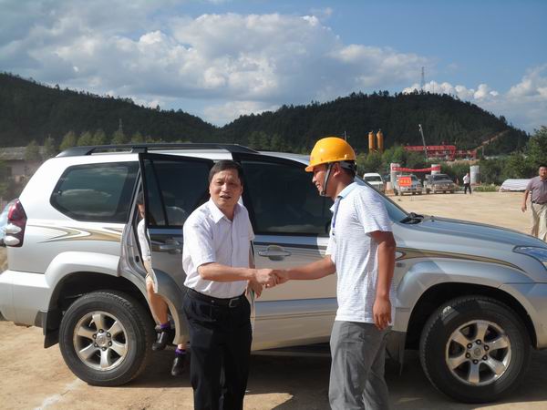 下午16:00,馬廳長一行冒著酷暑抵達我部2#預(yù)制梁場施工現(xiàn)場。一下車,馬廳長便與我部全體參建人員親切握手。隨后,馬廳長一行來到大廣高速龍楊段線路圖前,細心聽取了大廣高速龍楊段項目辦總工周軍平對整條工程線路概況的介紹以及對工程進度、質(zhì)量、安全管理等情況的簡單匯報。期間,針對馬廳長提出的問題,項目經(jīng)理羅權(quán)一一作出了詳細解答。馬廳長高度贊揚了我公司在江西高速建設(shè)中所作出的杰出貢獻,并鼓勵我B1標項目部再接再厲,爭創(chuàng)佳績。