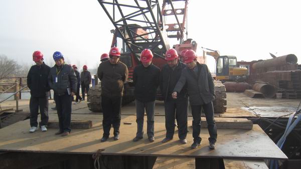 殷書記一行先后到箱梁預制場、鋼筋加工場、主墩鋼圍堰進行了現場查看,并聽取了該項目負責人關于項目施工管理情況的匯報。在座談會上,殷書記對項目部前期取得的成績給予了充分肯定,也指出了存在的不足。周科長就實地查看的情況進行了總結,指出從目前檢查情況來看,路基11標在施工質量上是下了功夫的,并鼓勵大家再接再厲,安全、優(yōu)質、高效地完成這座特大橋的建設。