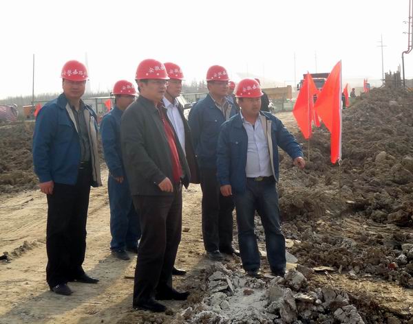 汪總一行首先對環(huán)湖北路項目進行了實地察看。項目經(jīng)理王明禮向汪總一行匯報了項目當前的工作進展情況以及施工中遇到的困難等。汪總、孫總、劉總均對橋梁施工中的難題及高填方軟基路段的施工技術提出了指導性建議,并指出橋梁施工過程中一定要把好質(zhì)量關安全關,高填方軟基處理一定要合理安排好土方的規(guī)范施工,合理調(diào)配機械設備,一定要按照標準化施工程序進行,保證施工質(zhì)量,切實做好施工中的安全防護工作。