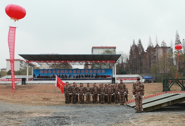 下午,在合肥警備區(qū)教導(dǎo)隊訓(xùn)練場,紅旗招展,彩球飄揚。公司從各單位、各項目抽調(diào)的50名隊員經(jīng)過為期一周的軍事化訓(xùn)練,精神抖擻、整裝待發(fā)。15:00時,演示活動正式開始。隨著梅廳長一聲令下,隊員們高舉“安徽省公路工程保障大隊”旗幟,齊喊口號,跑步進入現(xiàn)場,開始架設(shè)。在架設(shè)的同時,進行了現(xiàn)場同期聲解說。短短30分鐘內(nèi),隊員們分工明確,技術(shù)熟練,配合默契。在沒有機械設(shè)備的情況下,依靠人工肩扛手抬,迅速完成了桁架、橋面板等搭設(shè),將鋼橋推過河,隨后三輛炮車緩緩?fù)ㄟ^,進行裝備通載檢驗。至此,戰(zhàn)備鋼橋架設(shè)演示圓滿完成。演示活動結(jié)束后,領(lǐng)導(dǎo)們上橋檢閱,親切地接見、慰問了參演隊員,并合影留戀。