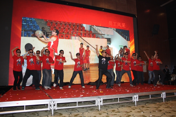 音域?qū)拸V,音色純正的男生獨(dú)唱《一生中最愛》,感情豐沛,對(duì)公司特有的情懷溢于言表;來自江西撫吉高速項(xiàng)目的歌曲串燒極具舞臺(tái)表現(xiàn)力,唱出了對(duì)公司的每位兄弟姐妹的美好祝愿;十年風(fēng)雨共濟(jì),十年不離不棄,宣寧項(xiàng)目自編自演的光影節(jié)目《十年》,黑白的影像,鏗鏘的獨(dú)白,展現(xiàn)了公司十年光輝歷程及對(duì)未來美好前景的祝愿,展現(xiàn)了鑄就恢弘藍(lán)圖的飽滿信心,引起了現(xiàn)場全體觀眾的內(nèi)心共鳴;后勤隊(duì)合唱《眾人劃槳?jiǎng)澊蟠?,讓我們感覺到了團(tuán)結(jié)就是力量,離夢(mèng)想的步伐將會(huì)越來越近;宣貍五標(biāo)青年團(tuán)隊(duì)引領(lǐng)潮流,團(tuán)隊(duì)風(fēng)采展示融合時(shí)下流行的《江南style》舞蹈,引爆全場,將聯(lián)誼會(huì)氣氛推向高潮;一首《牽手》,真情流露,溫柔而富有感性;租賃公司情景劇《瘋狂走四方》更是搞笑吐糟,引起陣陣掌聲,再一次讓現(xiàn)場氣氛推向高潮。