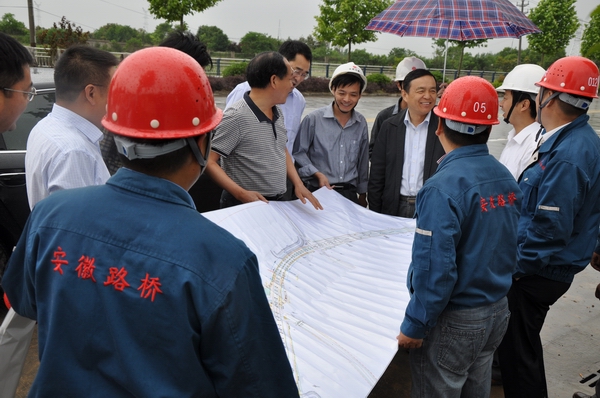 在施工現(xiàn)場,梅廳長認真聽取了汪總關于G206項目前期工作進展和現(xiàn)階段施工情況的匯報。梅廳長對G206項目進展情況表示了滿意和肯定,并勉勵該項目全體員工在保質(zhì)保量施工的同時,將外觀做得更好,更漂亮,充分展示路橋公司的企業(yè)形象。
