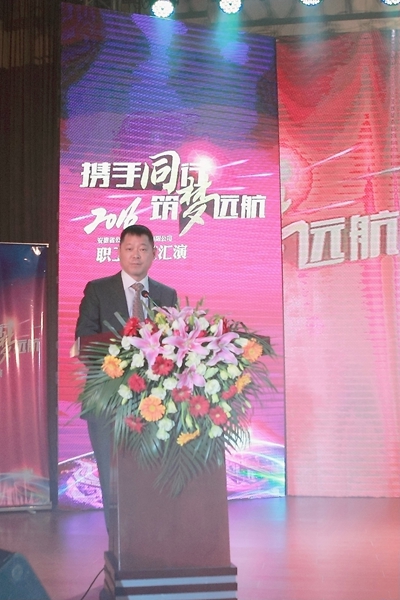 演出現(xiàn)場(chǎng)華燈璀璨,座無(wú)虛席,氣氛喜慶熱烈。匯演正式開始前,公司董事長(zhǎng)、總經(jīng)理孫學(xué)軍發(fā)表了熱情洋溢的致辭。他首先代表公司向蒞臨現(xiàn)場(chǎng)的嘉賓及長(zhǎng)期以來(lái)堅(jiān)持在公司各個(gè)崗位的員工及家屬,致以誠(chéng)摯的問候和新春的美好祝愿,向默默奉獻(xiàn),為路橋事業(yè)奠基的前輩們致以崇高的敬意。指出,2015年,是宏觀形勢(shì)錯(cuò)綜復(fù)雜的一年,也是公司成績(jī)斐然的一年,在建工集團(tuán)的正確領(lǐng)導(dǎo)下,全體員工凝心聚力,開拓奮進(jìn),取得了驕人的業(yè)績(jī)。充滿機(jī)遇和挑戰(zhàn)的“十三五”已經(jīng)開局,全體路橋人要秉承優(yōu)良傳統(tǒng),凝心聚力,同舟共濟(jì),譜寫安徽路橋新的輝煌。