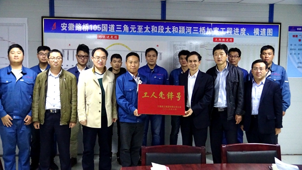10月25日下午,集團(tuán)公司工會(huì)副主席吳曉伍一行在公司工會(huì)主席楊建強(qiáng)的陪同下,來到太和三橋項(xiàng)目,對該項(xiàng)目創(chuàng)建“工人先鋒號(hào)”工程進(jìn)行驗(yàn)收。驗(yàn)收通過后,被授予“工人先鋒號(hào)”稱號(hào)。