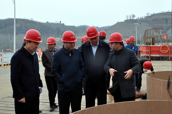 3月15日下午,濟源市副市長李拴根一行在市交通運輸局局長安東利、濟洛西高速公路建設(shè)有限公司董事長楊新民的陪同下,蒞臨公司承建的濟洛西高速黃河特大橋項目調(diào)研指導(dǎo)工作。