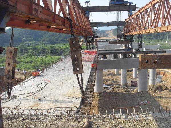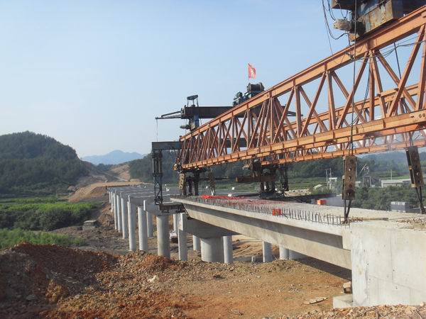 5月28日下午4時,在陣陣喜慶的鞭炮聲中,隨著箱梁的穩(wěn)穩(wěn)落下,績黃高速02標K12+976.5大橋第一片箱梁成功安裝。此次安裝的箱梁長25米、寬2.85米、重72噸,是第十跨右幅邊梁。據(jù)悉,這是績黃高速公路全線安裝的第一片箱梁。