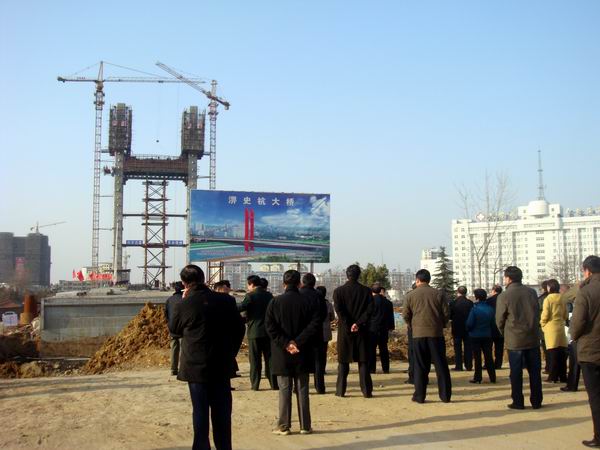 湯書記一行來到南岸主橋現(xiàn)場(chǎng),邊看邊聽取了業(yè)主責(zé)任人曹德林主任關(guān)于當(dāng)前施工情況的介紹。市領(lǐng)導(dǎo)對(duì)我部堅(jiān)持高起點(diǎn)、高標(biāo)準(zhǔn)、高質(zhì)量、高效率的施工,和當(dāng)前取得的建設(shè)成績(jī)表示了滿意,并希望我部再接再厲、再創(chuàng)佳績(jī)。我部表示將繼續(xù)以飽滿的熱情,一絲不茍的責(zé)任心、一如既往的恒心把各項(xiàng)工作做好,絕不辜負(fù)市領(lǐng)導(dǎo)和全市人民的期望。