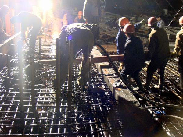 淠望路大橋主橋全長(zhǎng)120米,共有15個(gè)節(jié)段,是整個(gè)大橋的重難點(diǎn)和關(guān)鍵控制性工程,全部采用前支點(diǎn)掛籃施工。由于施工技術(shù)含量高、施工難度大,關(guān)系到全橋的進(jìn)度與形象,是全橋施工的重中之重。開(kāi)工伊始項(xiàng)目部就高度重視,提出了“向主橋要進(jìn)度、向引橋要形象”的口號(hào);多次組織專家評(píng)審施工方案、優(yōu)化施工工藝,特別是“塔梁并進(jìn)”工藝的采用,極大地促進(jìn)了工效,既縮短了工期又降低了成本。隨著工程的推進(jìn),項(xiàng)目部審時(shí)度勢(shì)的不斷優(yōu)化整合施工資源配置:在施工力量、機(jī)械設(shè)備上優(yōu)先滿足主橋施工需要。在搶時(shí)間趕進(jìn)度的同時(shí)不斷強(qiáng)化現(xiàn)場(chǎng)安全生產(chǎn)管理,并嚴(yán)把質(zhì)量關(guān),特別是會(huì)同監(jiān)控單位加強(qiáng)了對(duì)整橋線形控制,使之符合設(shè)計(jì)和施工技術(shù)規(guī)范要求,達(dá)到了預(yù)期效果。在工序無(wú)間隙、晝夜無(wú)間斷,質(zhì)量有控制、安全有保障的良好狀態(tài)下,以七至八天每節(jié)段的速度全力推進(jìn)主橋建設(shè),圓滿的完成了主橋建設(shè)的各項(xiàng)任務(wù)。