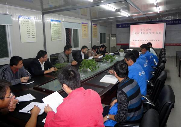 項目總工王守武擔任本次本次活動的主持人。王總工首先全體項目員工重點強調(diào)了本次規(guī)章制度學習會議的重要性,隨后安排主辦會計高偉、項目辦公室陳凱等幾位同志對公司財務、人力資源、辦公室等部門的職能逐條進行介紹,并對不同職能部門的管理制度作深入細致的闡述和解釋。