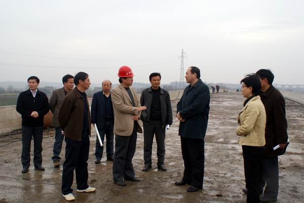 3月19日上午9:20,蕪湖市政府副市長朱誠在市交通局、公路局、蕪湖縣政府等相關(guān)領(lǐng)導(dǎo)陪同下,來我青弋江大橋視察指導(dǎo)工作。朱市長一行下車后步行上橋,看到我大橋護(hù)欄、砼橋面已全部完成后,非常高興。在聽了基本情況匯報后,他指出:這座橋是這條路的龍頭,希望能早日通車,并對項(xiàng)目部提出要求,4月15日一定要完成瀝青路面及附屬工程,確保簡易通車。
