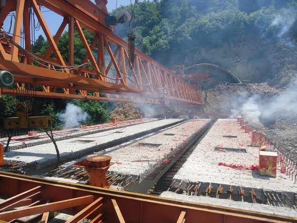 寧績(jī)07標(biāo)成功架設(shè)最后一片箱梁 發(fā)布時(shí)間:2013年06月03日 來源:寧績(jī)07標(biāo) 發(fā)布人: 作者:衛(wèi)驥午 瀏覽:3003次 6月3日上午10時(shí)58分,伴隨著一陣陣響徹山谷的鞭炮聲,寧績(jī)07標(biāo)項(xiàng)目最后一片箱梁平穩(wěn)準(zhǔn)確地架設(shè)到位。至此該項(xiàng)目箱梁全部架設(shè)完成。